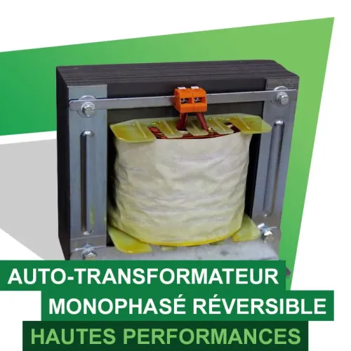 Les autotransformateurs de puissance monophasés réversibles sont conçus pour permettre une inversion de la tension d'alimentation en inversant les connexions d'entrée et de sortie de l'autotransformateur. Cela permet de changer la polarité de la tension de sortie, ce qui est utile dans les applications où l'inversion de la tension est nécessaire.