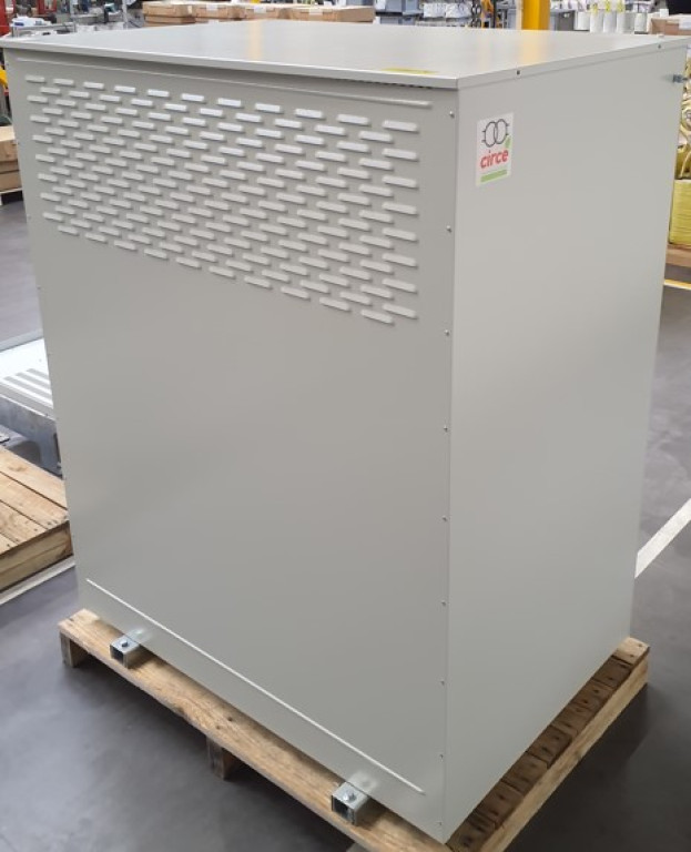 Photo : Transformateur Triphasé 400/400V 250kVA IP23 en version ECO-DESIGN, réalisé dans nos ateliers, offrant un rendement de plus de 98%.